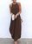 Vacation Plain Halter Cotton And Linen Maxi Dress