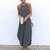 Casual Cotton Linen Maxi Dress High Waist Stand Collar Daily