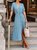 Denim Urban Plain Split Joint Cross Neck Midi Dress No Belt