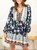 Vacation Color Block Balloon Sleeve Split Joint V Neck Mini Dress
