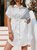 Elegant Geometric Crew Neck Knee Length Dress With Belt