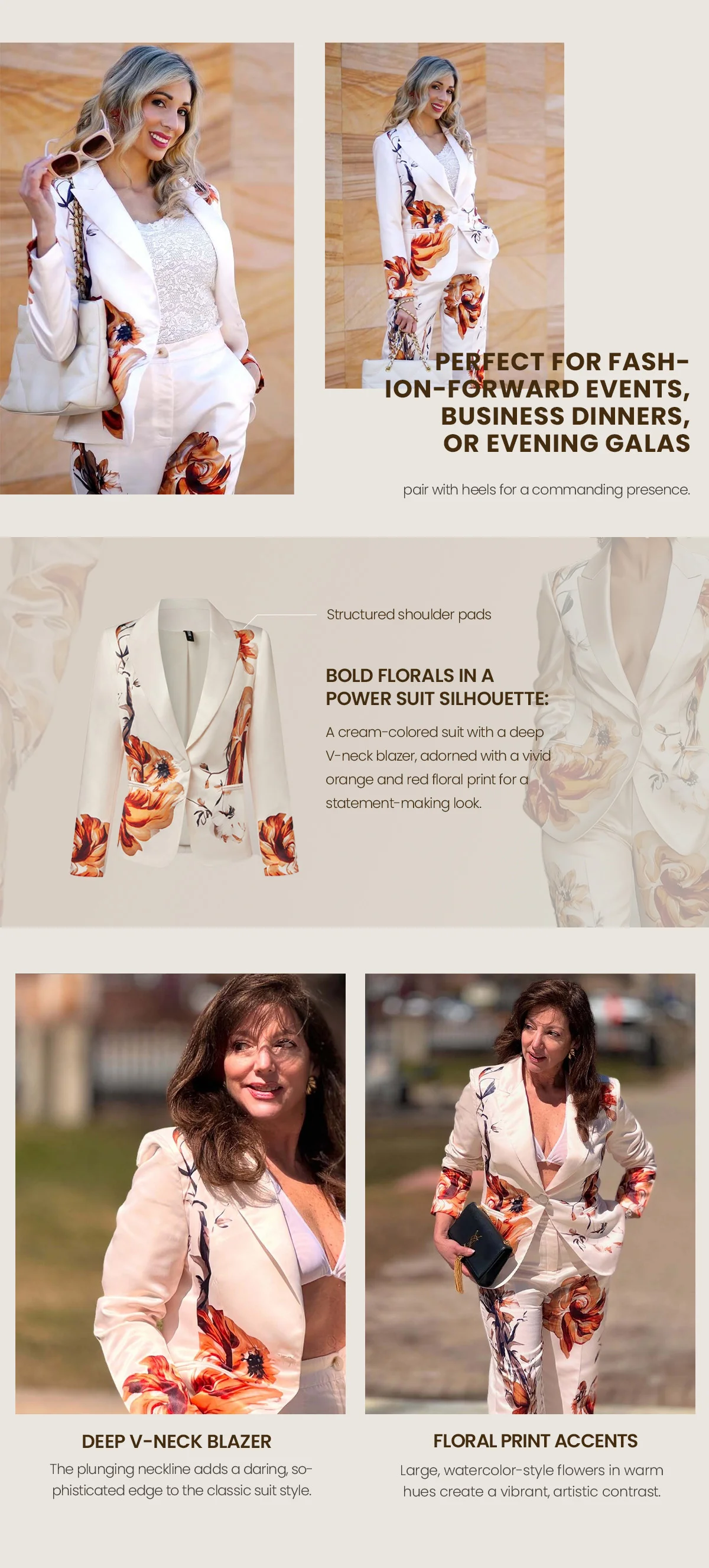 Crafted from lustrous satin, this floral blazer blends subtle luxury with eye-catching elegance. Featuring dual pockets for functionality, its refined silhouette suits formal events, dinner parties, and sophisticated everyday wear.