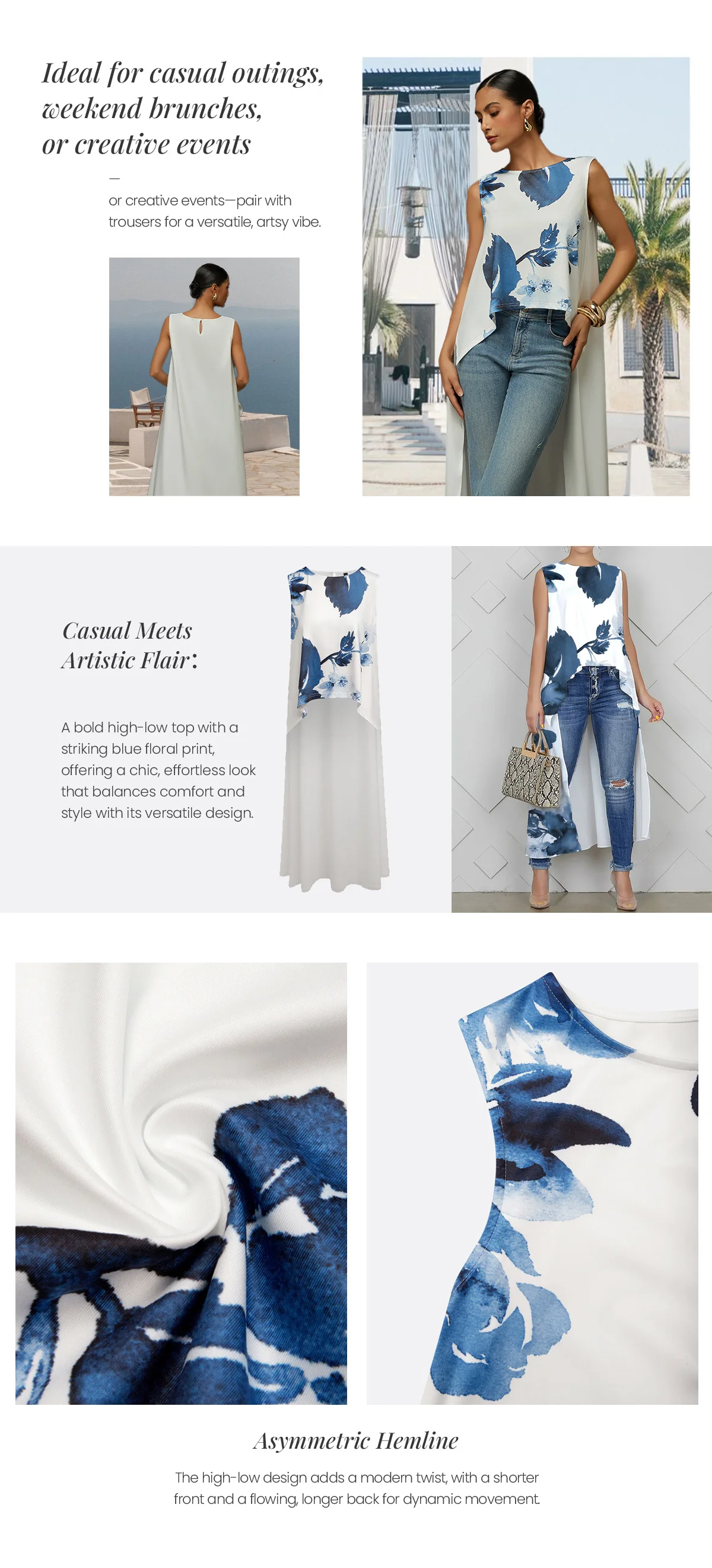This breezy floral tank features a flattering high-low hem and relaxed fit, ideal for warm-weather layering. Lightweight, breathable fabric ensures all-day comfort with effortless, easygoing style.