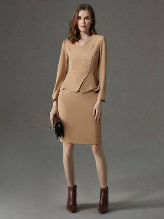 Elegant Plain Peplum Cross Neck Party Maxi Dress
