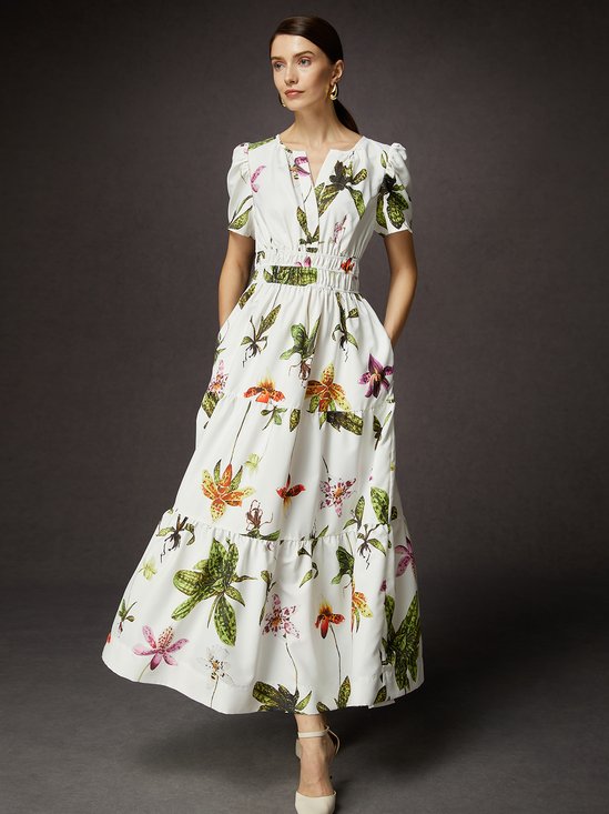 Elegant Random Print Printing Crew Neck Maxi Dress
