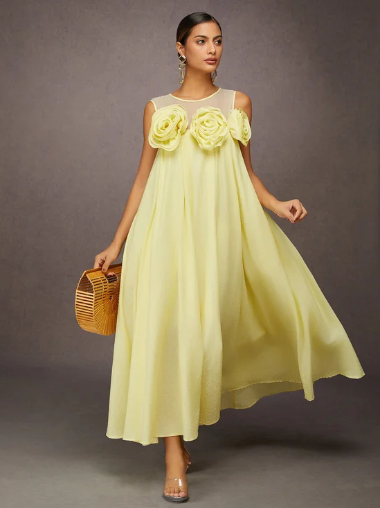 Vacation Breezy Bloom 3D Floral Maxi Dress