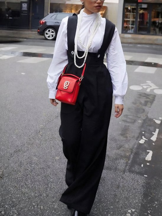 Casual Plain Crew Neck Balloon Sleeve Sweatshirt