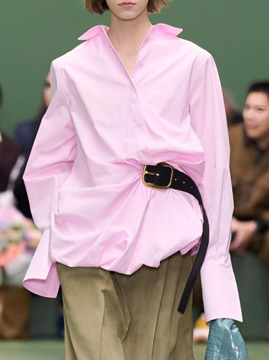 Urban Shirt Collar Long Sleeve Loose Blouse