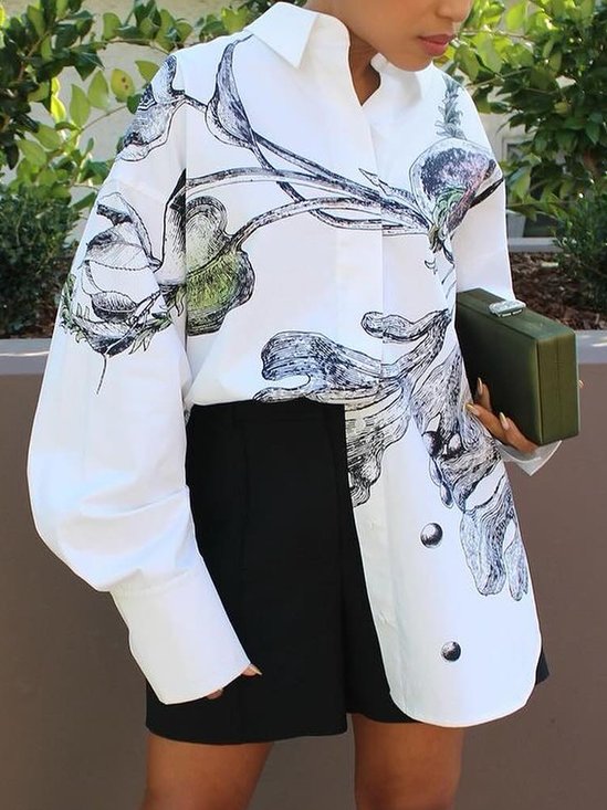 Casual Floral Shirt Collar Shirt