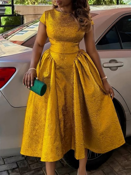 Elegant Plain Peplum Cross Neck Party Maxi Dress