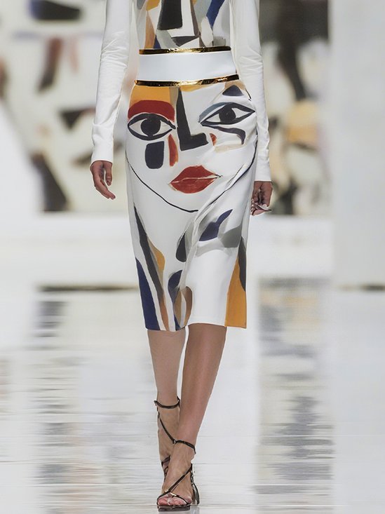 Medium Elasticity Regular Fit Color Block Casual Mini Skirt