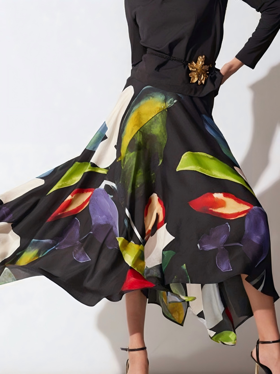 Urban Irregular Craftsmanship Color Block Maxi Skirt
