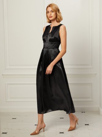 Vintage Plain Sleeveless Crew Neck Casual Weaving Dress