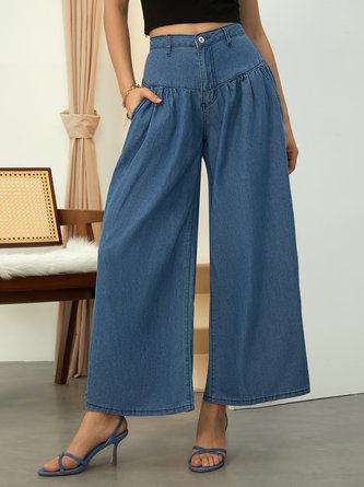 Urban Denim Buttoned Plain Wide Leg Jeans