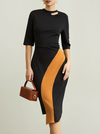 Casual Color Block Classic Tight Crew Neck Bodycon Dress