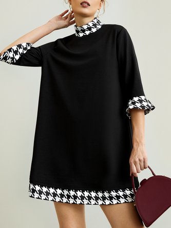 Elegant Color Block Split Sleeves Stand Collar Midi Dress