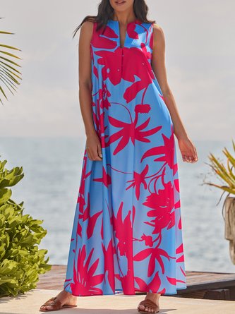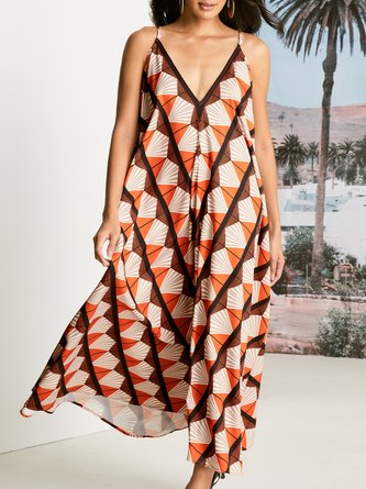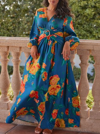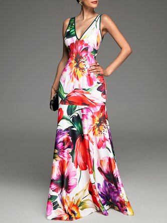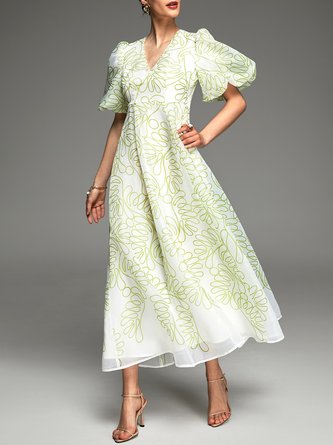 Elegant Gradient Pattern Printing V Neck Maxi Dress