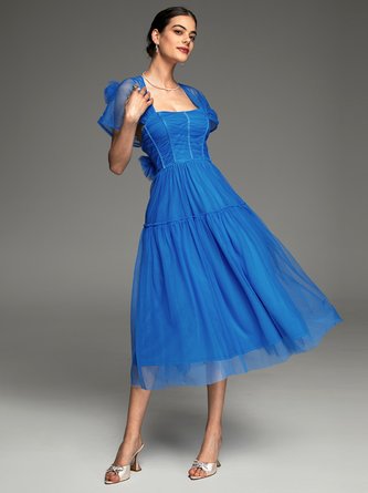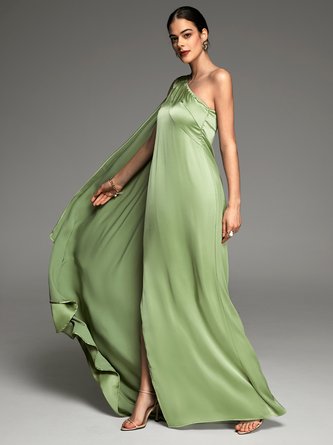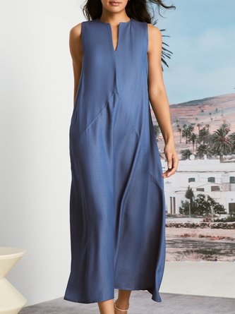 Cotton And Linen Casual Plain Balloon Sleeve Irregular Craftsmanship Maxi Dress