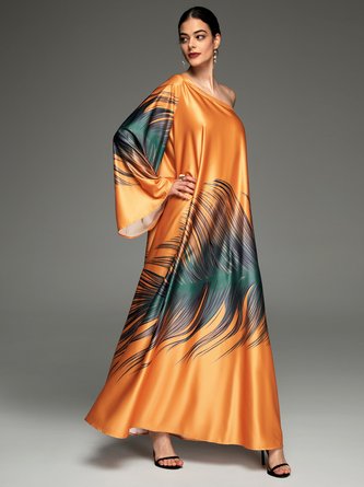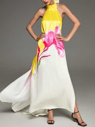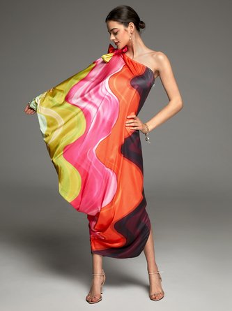 Urban Abstract Printing Gathered Crew Neck Maxi Dress