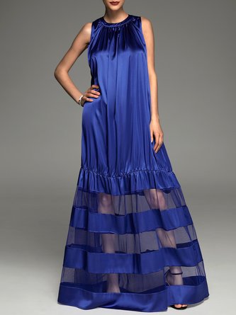 Cotton Casual Plain Loosen Crew Neck Maxi Dress