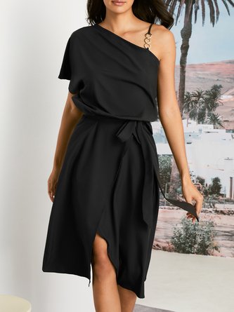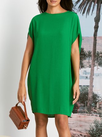 Elegant Plain Gathered Boat Neck Knee Length Dress