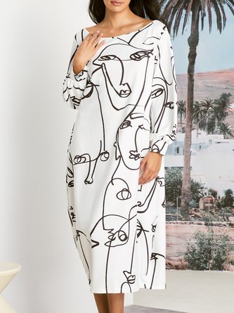 Urban Abstract Graphic Printing Crew Neck Knee Length Dress