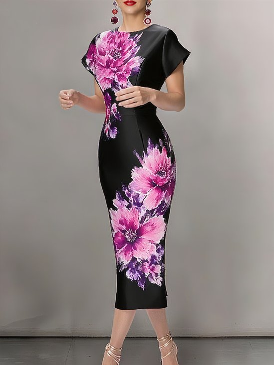 Elegant Geometric Bell Sleeve Printing Knee Length Dress