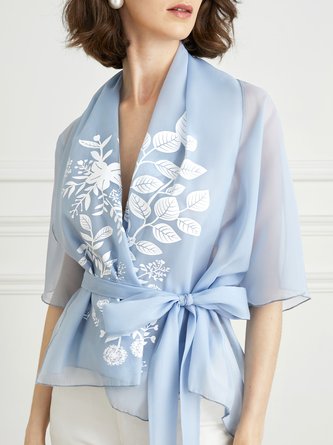 Elegant Shoulder Pad Floral Lapel Collar Blazer