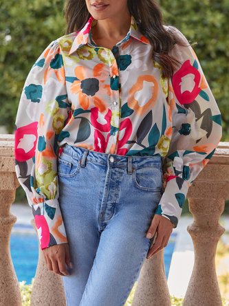 Satin Urban Floral Shirt Collar Shirt