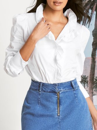 Urban Plain Lotus Leaf Collar Shirt