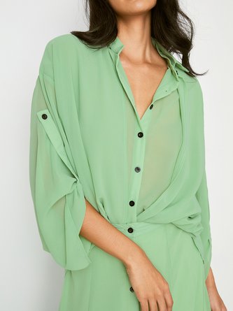 Satin Elegant Plain Shirt Collar Shirt