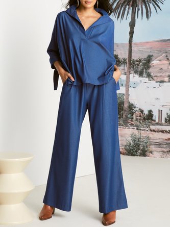 Casual Plain Shirt Collar Denim Shirt