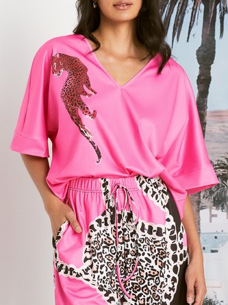 Satin Elegant Plain Tie V Neck Blouse