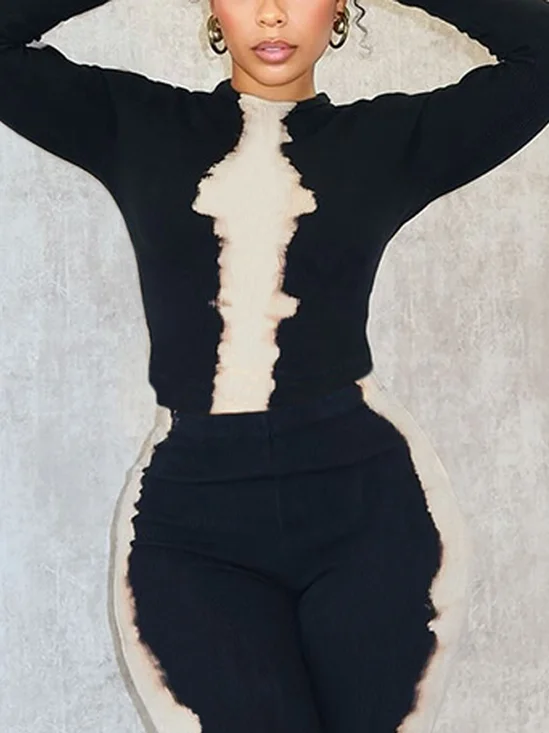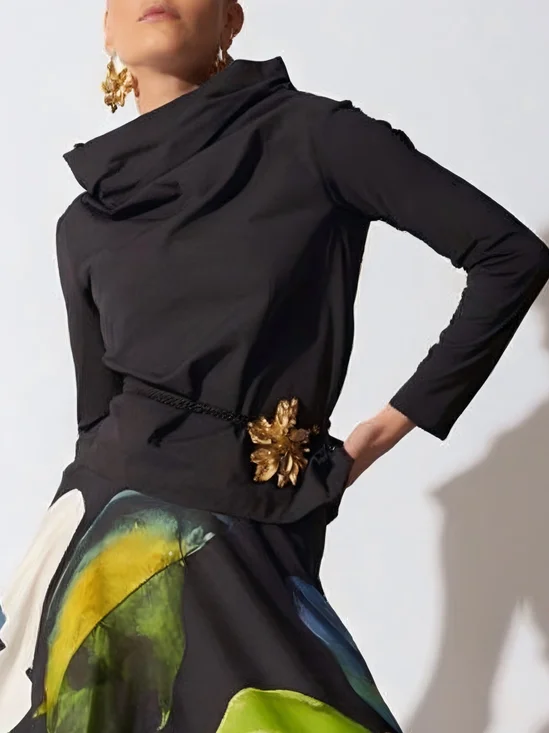 Daily Abstract Casual Stand Collar Long Sleeve T-Shirt