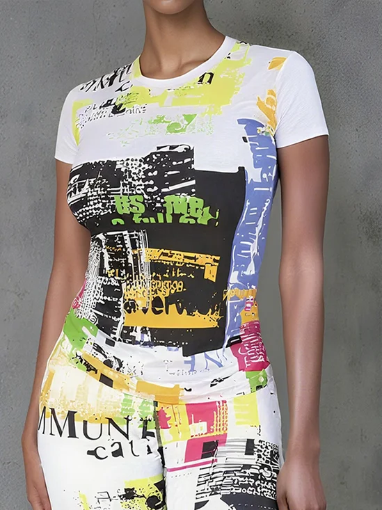 Urban Letter Pattern Printing Scoop Neck T-shirt