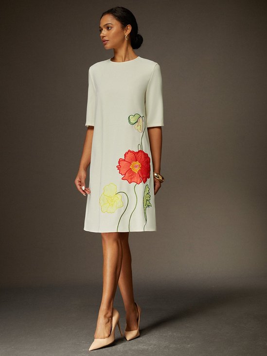Elegant Plain 3D Floral Sheer Mesh Patch Regular Fit Dress