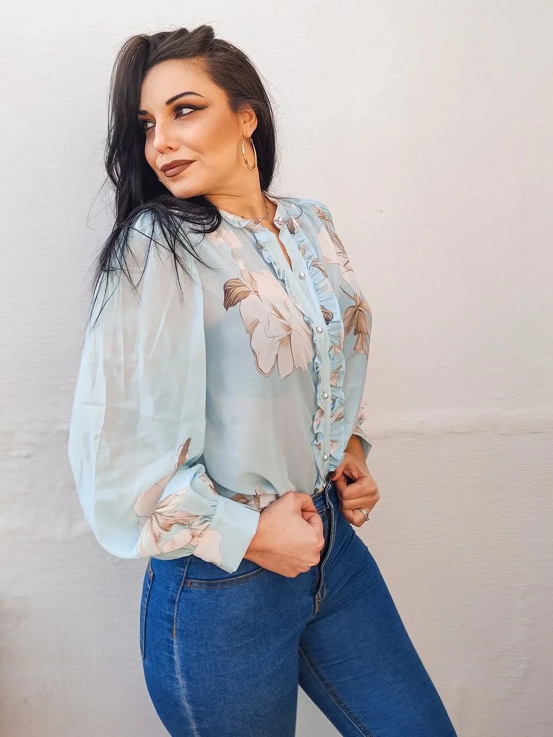 Very pretty blouse. Washes up nicely and seems to be a good purchase price. I would definitely recommend.This is a light weight good length blouse and can go casual or dressy. The blouse is very comfortable and looks great. I love the design.