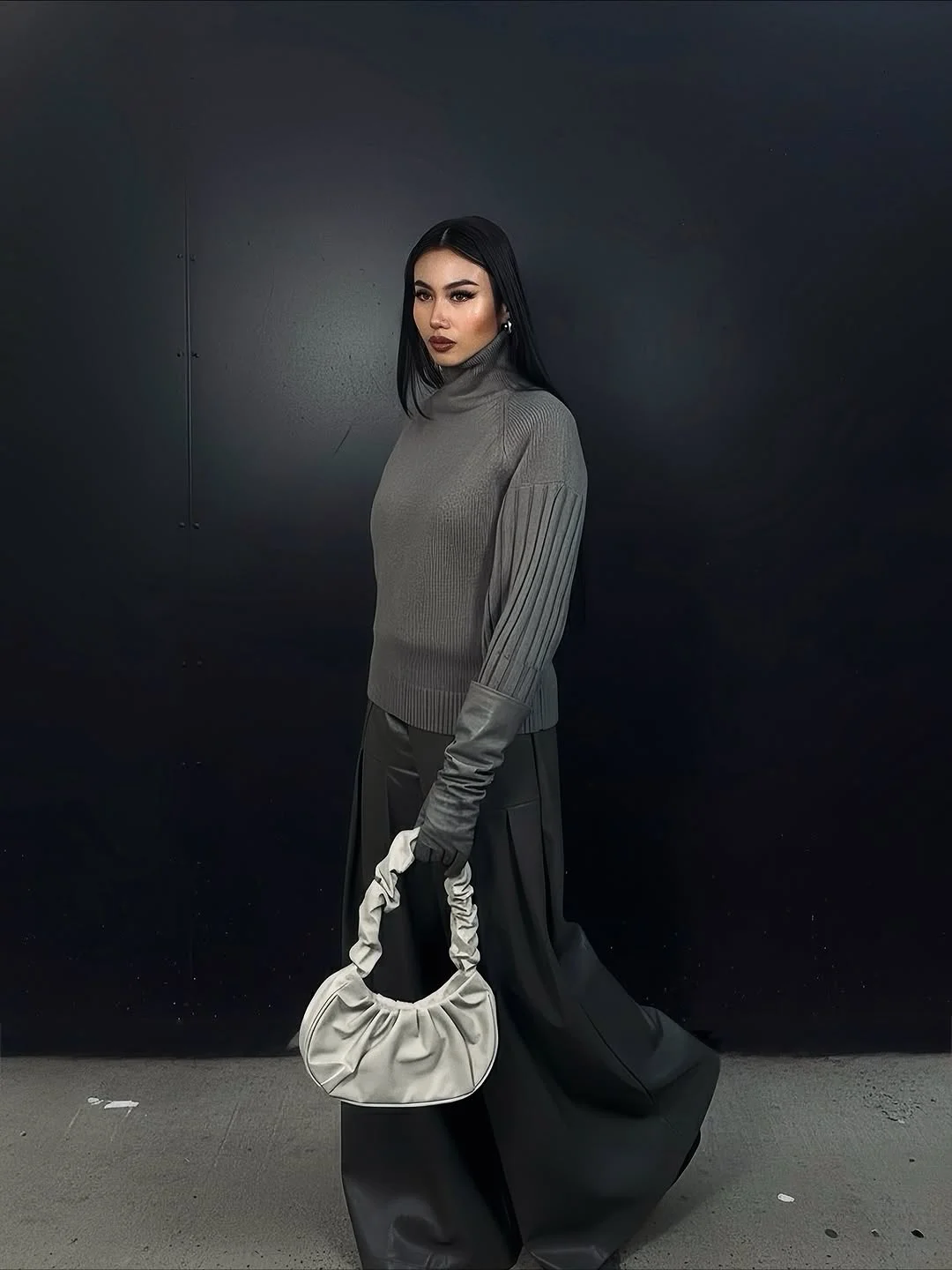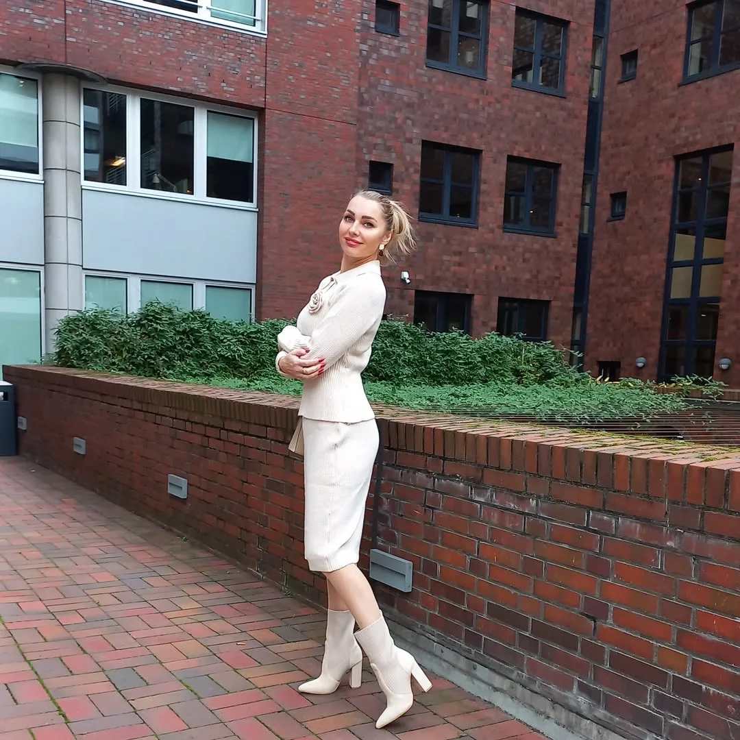 I'm absolutely in love with this outfit! The off-shoulder sweater adds a touch of femininity and the satin skirt gives it a luxurious feel. The fit is perfect and the fabric is high quality. I wore this to an afternoon tea party and received so many compliments. It's the perfect outfit for any special occasion.