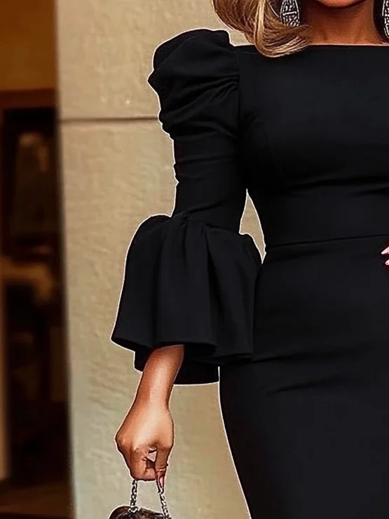 Elegant Bell Sleeve Gathered Bodycon Dress