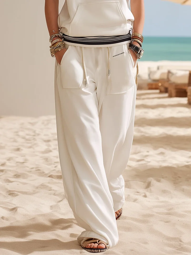 Casual Letter Pattern Wide Leg Pants
