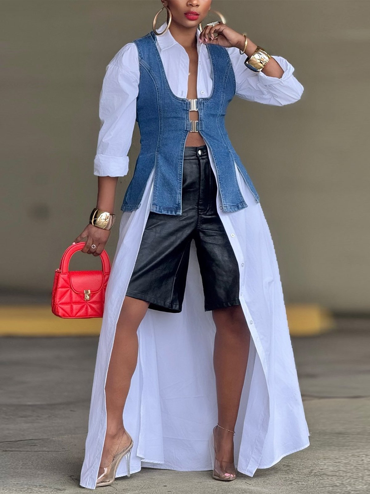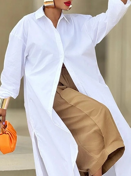 Embrace effortless style with this casual cotton long shirt, featuring a relaxed, oversized fit, classic button-down design, and versatile styling to wear as a dress or layer over pants for a modern look.