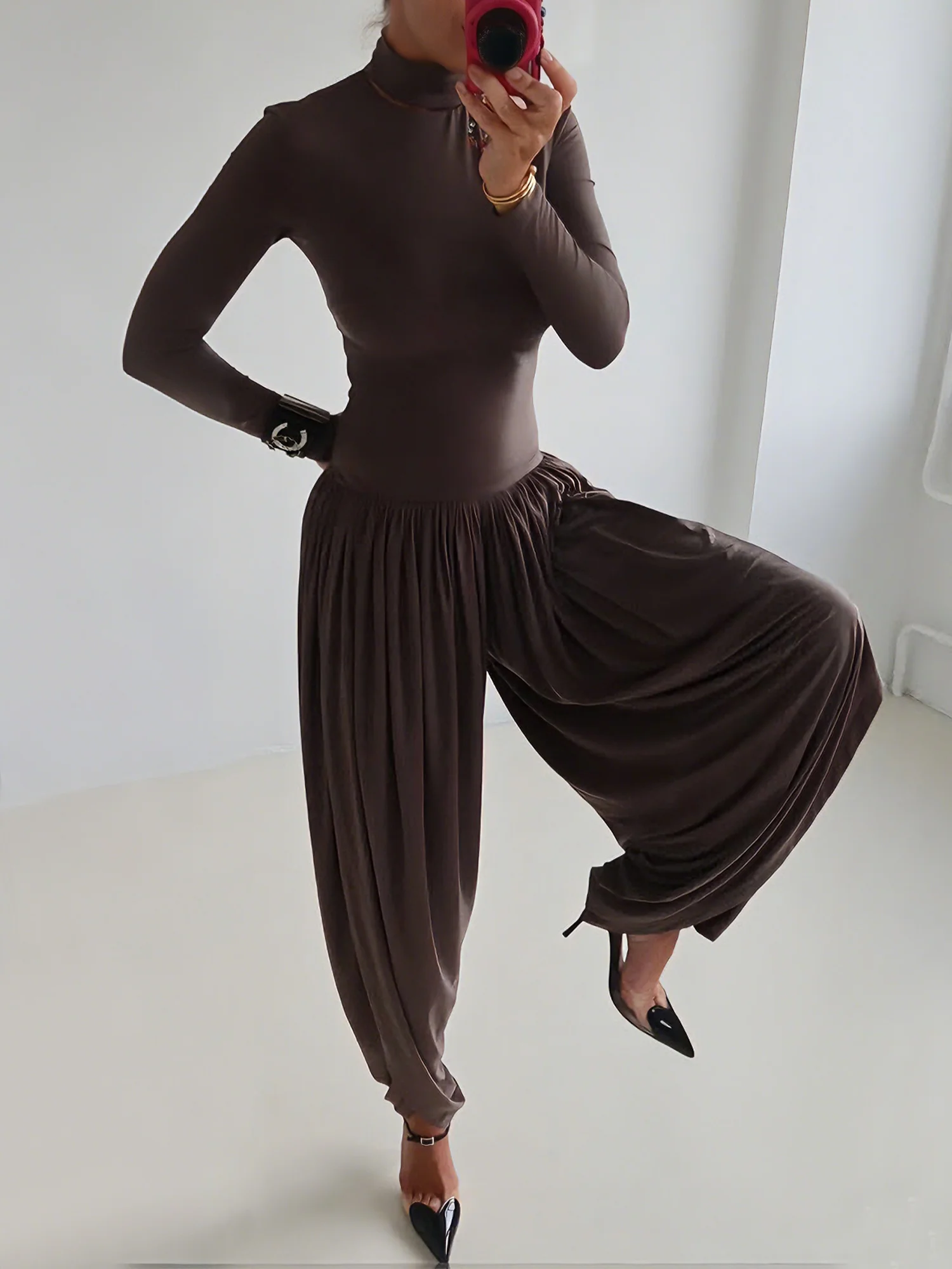 Casual Plain Stand Collar T-Shirt Jumpsuit