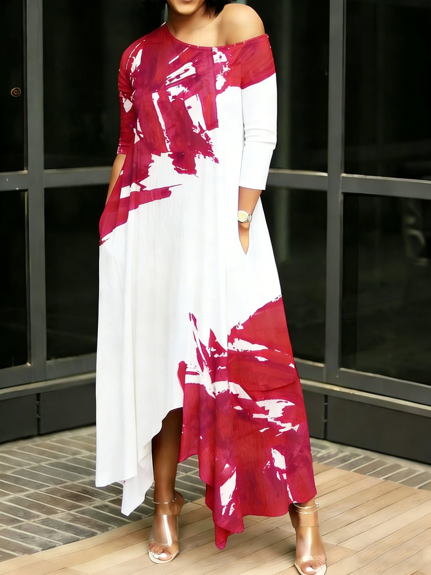 Casual Random Print Printing Crew Neck Maxi Dress