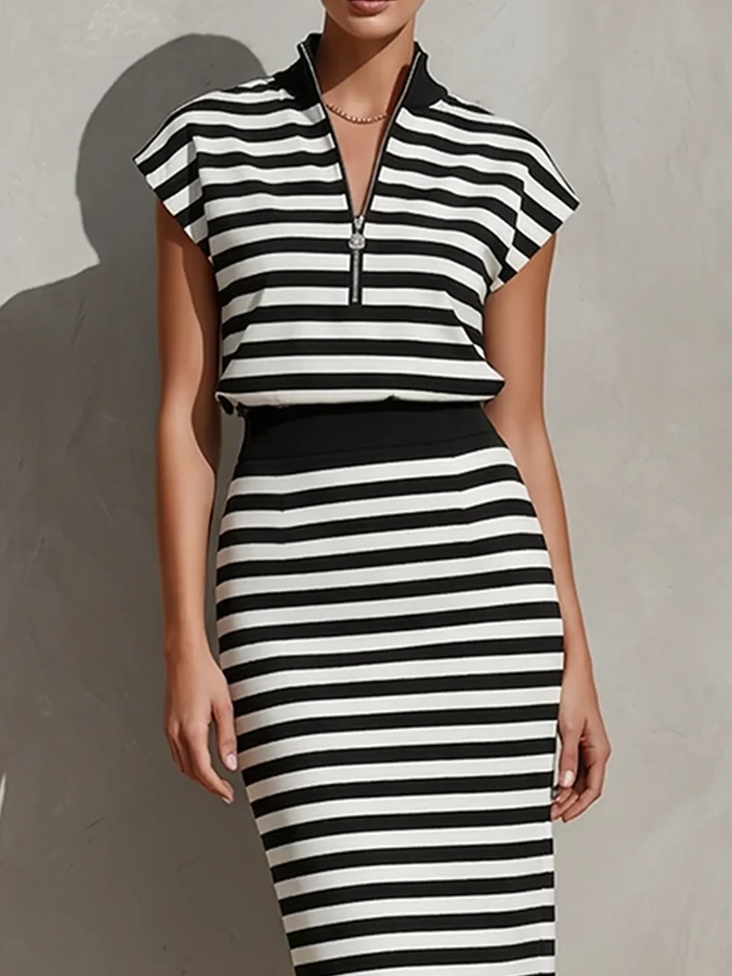 Casual Striped Stand Collar Blouse