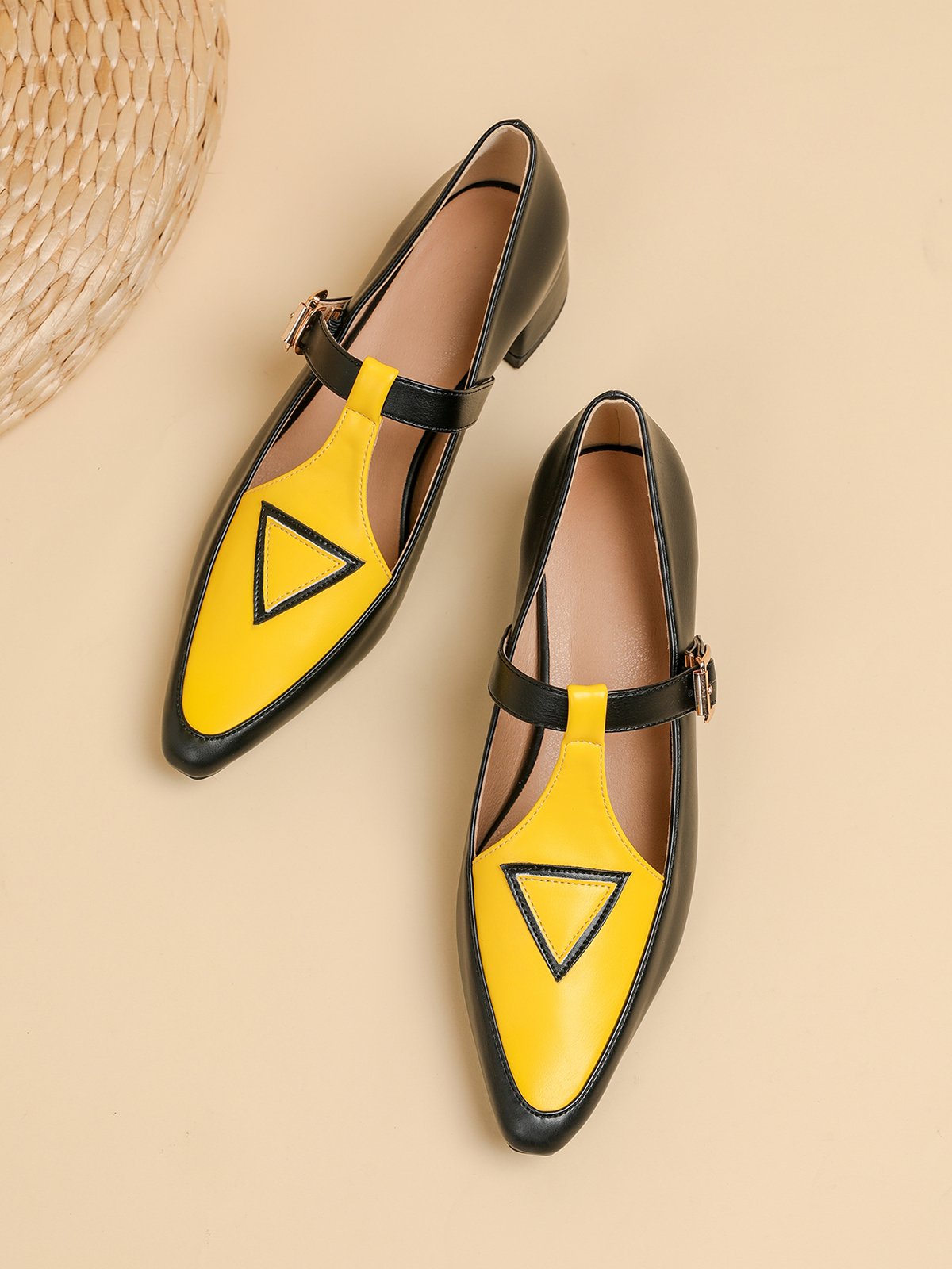 Color Block Adjustable Buckle Urban T-Strap Shoes