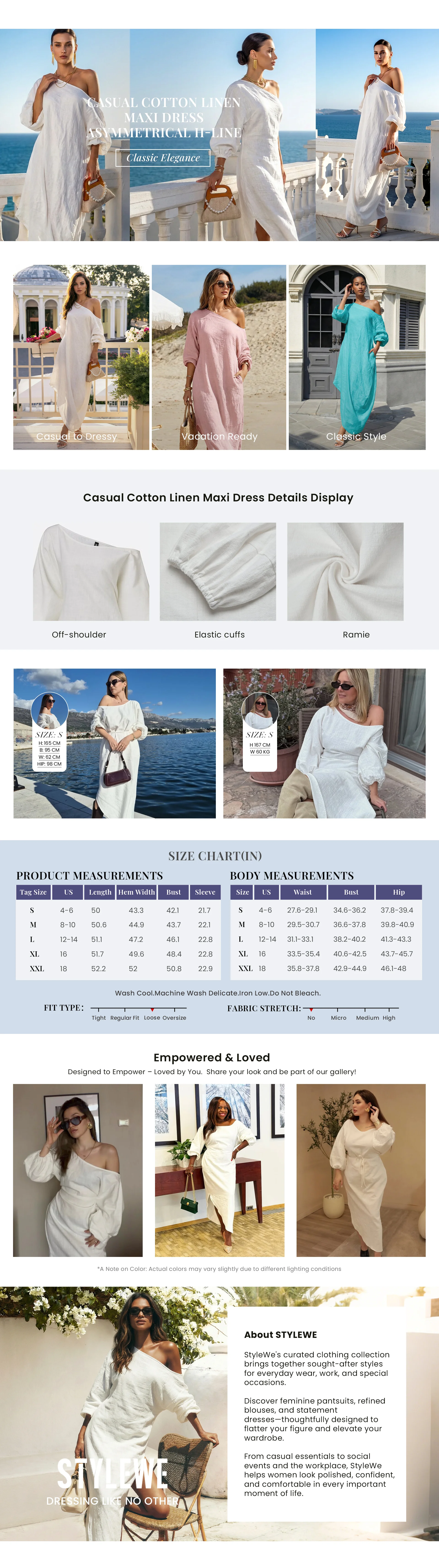 Breathable cotton-linen maxi featuring balloon sleeves and an asymmetrical hem. Effortless daily style for spring.