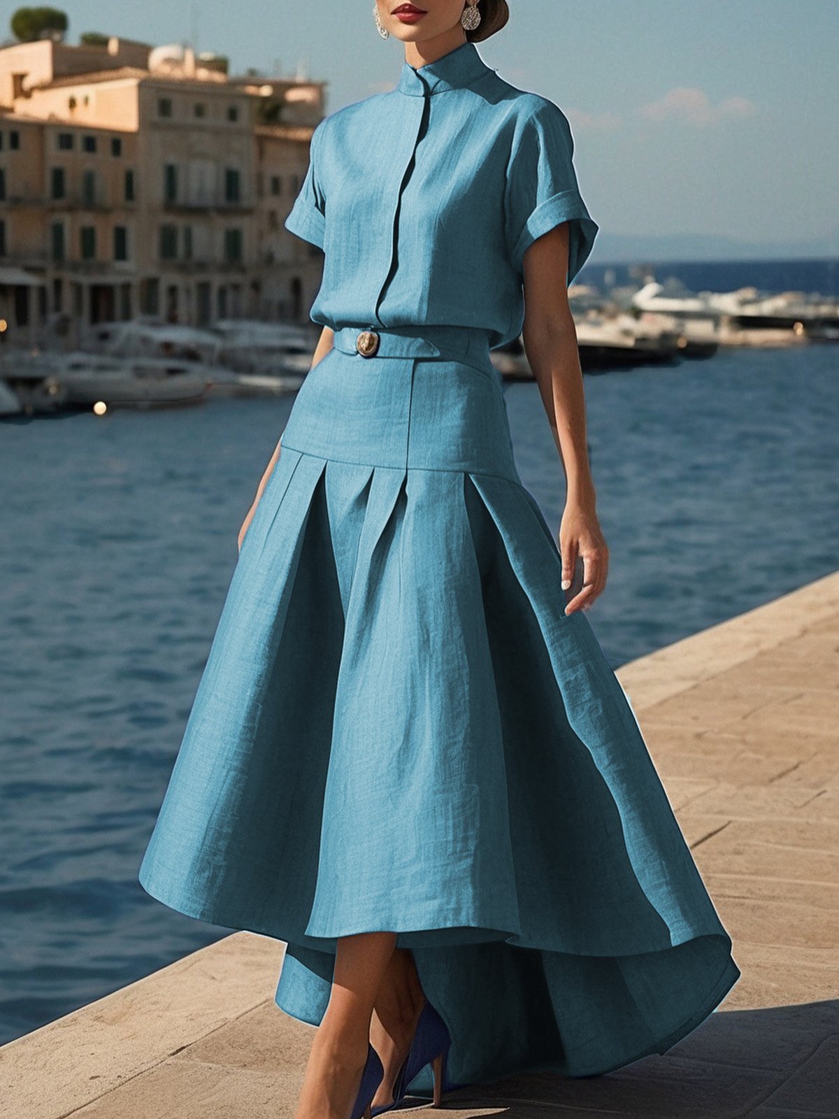 Shoulder: 16.1, Bust: 41.7, Sleeve Length: 8.7, Length: 25.6, Hem Width: 43.3 (inch)