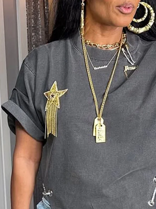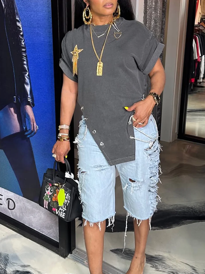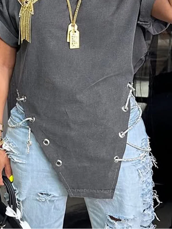 Crafted with soft cotton, this side-slit chain tee is loose for comfort and oozes urban-chic style.