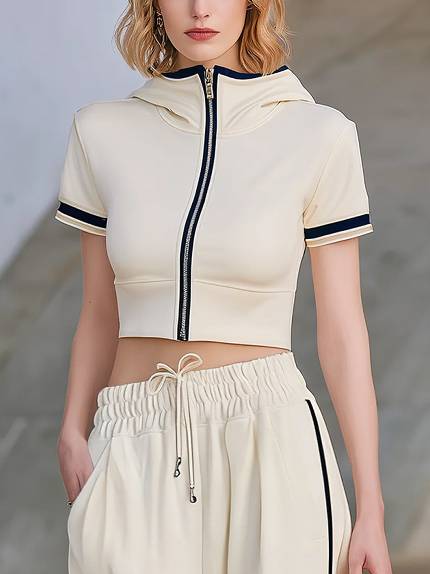 Cotton Casual Split Joint Color Block Hoodie Jacket