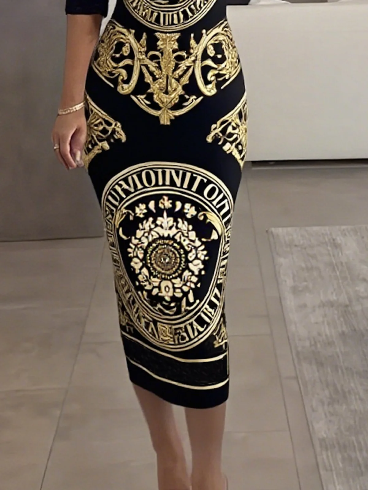 Bold 3D print meets a refined crew neckline in this art-inspired midi. The perfect conversation starter for gallery visits, cocktail parties, and chic evening affairs.